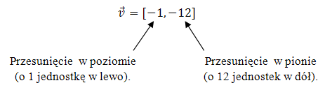 Jeżeli chcemy przesunąć wykres w lewo, albo w dół, to na współrzędnych wektora podamy