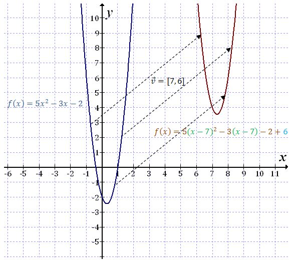 Czyli jeśli przesuniemy funkcję \(f(x)\) o wektor \(\vec{v}=[p,q]\) to otrzymamy funkcję: