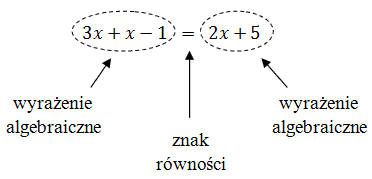 Równanie - to dwa wyrażenia algebraiczne połączone znakiem równości, np.: