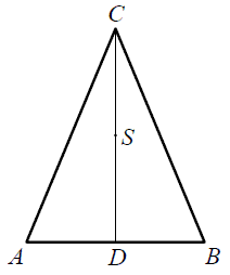 Punkt \(S\) jest środkiem wysokości \(CD\) trójkąta równoramiennego \(ABC\), w