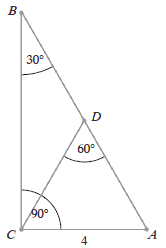 |CD|=2 \). Podstawa \( AB \) tego trójkąta ma długość
