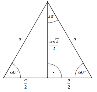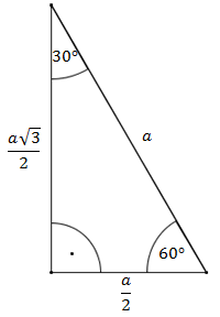 \frac{1}{a}=\frac{\sqrt{3}}{2}\\[10pt]&\cos 60^\circ =\frac{\frac{a}{2}}{a}=\frac{a}{2}\cdot