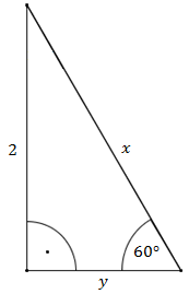 \[\operatorname{tg} 60^\circ =\frac{2}{y}\] Ponadto wiemy, że \(\operatorname{tg} 60^\circ