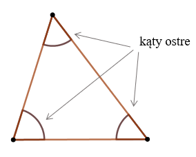 - ostrokątny - jeżeli ma wszystkie kąty ostre (od \(0^\circ \) do \(90^\circ \)),