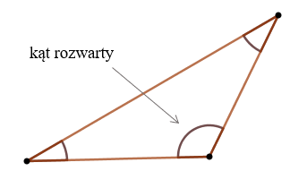 - rozwartokątny - jeżeli ma jeden kąt rozwarty (większy niż \(90^\circ \)).