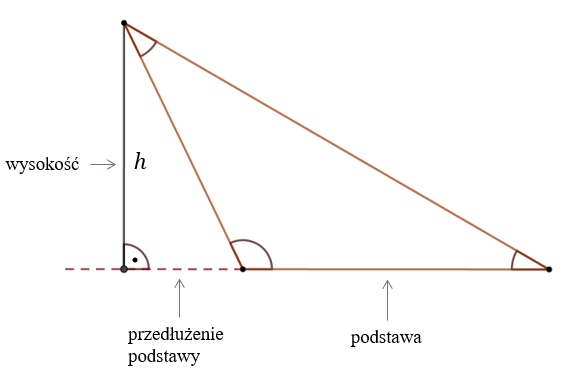 Trójkąt rozwartokątny i wysokość opuszczona na przedłużenie podstawy.