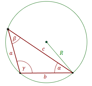 \[\frac{a}{\sin \alpha }=\frac{b}{\sin \beta }=\frac{c}{\sin \gamma }=2R\] gdzie \(R\) - to długość