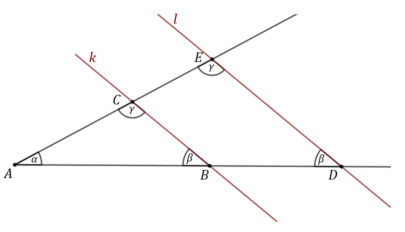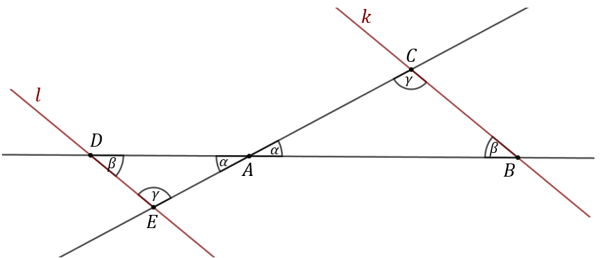 przecięto prostymi równoległymi \(k\) i \(l\). Wówczas zgodnie z
