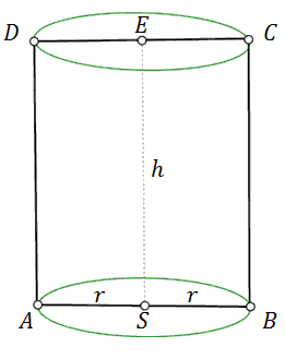 Powyższy walec powstał przez obrót prostokąta \(SBCE\) wokół prostej \(SE\).