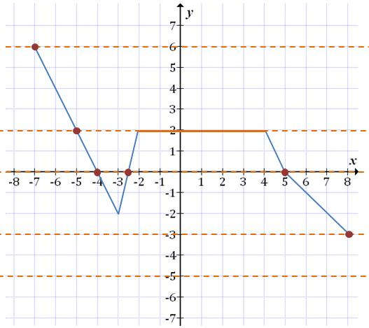 wartość \(y=2\) funkcja przyjmuje dla \(x = -5\) oraz dla \(x \in \langle -2,