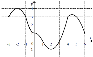 Rysunek przedstawia wykres pewnej funkcji \( y=f(x) \), określonej dla \( x \in