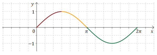 czyli z przedziału \(\left \langle 0, \frac{\pi }{2} \right \rangle\). W kolejnych przedziałach