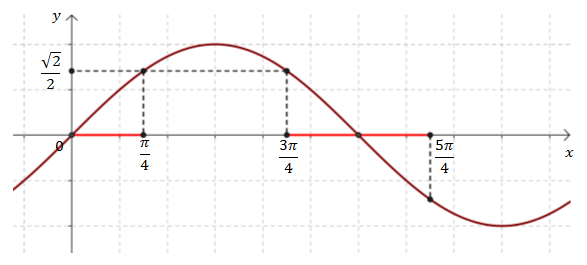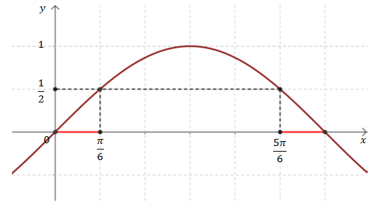 Z wykresu odczytujemy, że: \[\sin \frac{5\pi}{6}=\sin