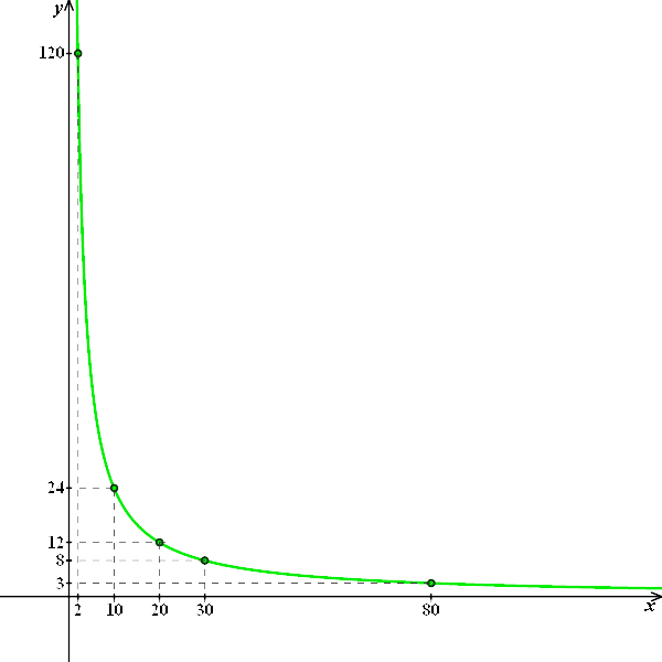 | \( y=\frac{240}{x} \) |