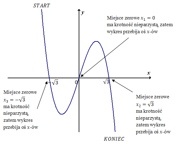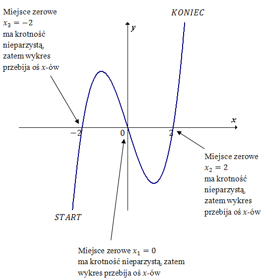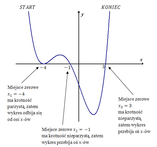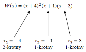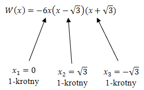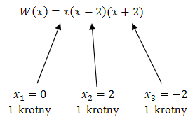 Wielomian jest dany w postaci iloczynowej, więc zaczynamy od wyznaczenia