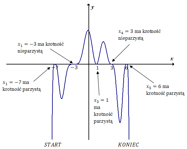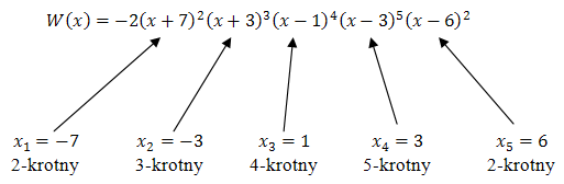 miejsc zerowych: \[-2(x + 7)^2(x + 3)^3(x - 1)^4(x - 3)^5(x - 6)^2 = 0\\[6pt] x + 7 = 0 \quad