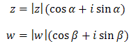 argumentami odpowiednio: \(\alpha \) i \(\beta \), Możemy zapisać w postaci trygonometrycznej: