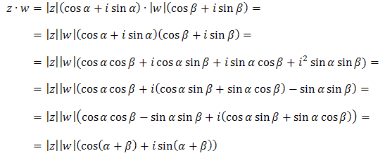 - moduł jest iloczynem modułów liczb \(z\) oraz \(w\),