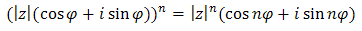 Korzystając ze wzoru de Moivre'a liczymy, że: