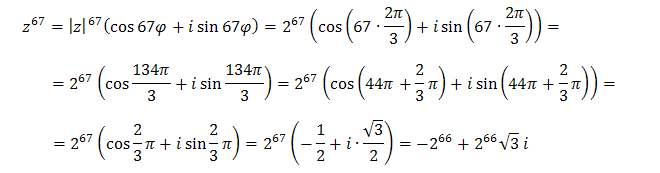 Dana jest liczba \(z = -1+\sqrt{3}i\). Oblicz \(z^{67}\).