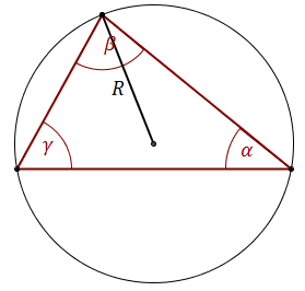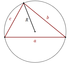 \(R\) - długość promienia okręgu opisanego na trójkącie