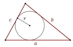 \(p\) - połowa obwodu trójkąta, czyli \(p=\frac{a+b+c}{2}\)
