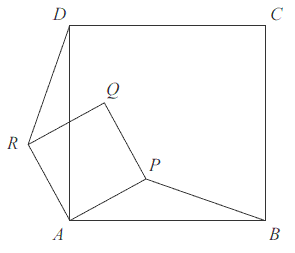 Czworokąty \(ABCD\) i \(APQR\) są kwadratami. Udowodnij, że \(|BP| = |DR|\).