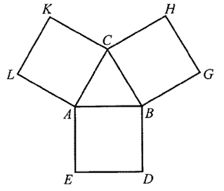 kwadraty \(ABDE\), \(CBGH\) i \(ACKL\). Udowodnij, że trójkąt \(KGE\) jest równoboczny.