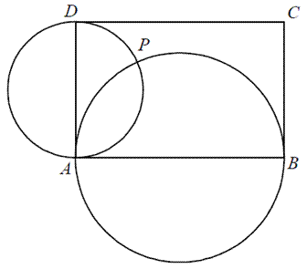 Dany jest prostokąt \(ABCD\). Okręgi o średnicach \(AB\) i \(AD\) przecinają się w