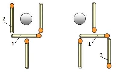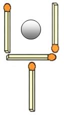 sprawić - zmieniając położenie tylko dwóch zapałek - żeby kulka znalazła się poza szufelką?