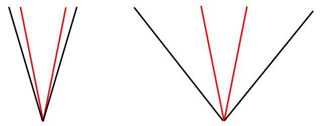 Oba czerwone odcinki są równej długości, jednak ten znajdujący się po prawej