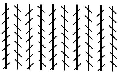 Pionowe odcinki są równoległe. W wyniku dorysowania ukośnych kresek mamy